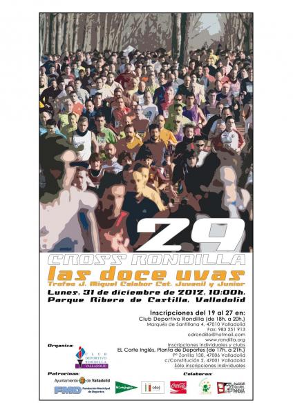 El Club Deportivo Rondilla organiza, el día 31 de Diciembre de 2012, a partir de las 10:00 horas el XXIX CROSS RONDILLA “LAS 12 UVAS” en el Circuito del “Parque Ribera de Castilla” en la Rondilla, Valladolid.